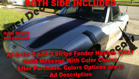 Mazda Miata 1998-2001 Gen 2 Fender Hash 2 or 3 Stripes Vinyl Decals - Both Sides