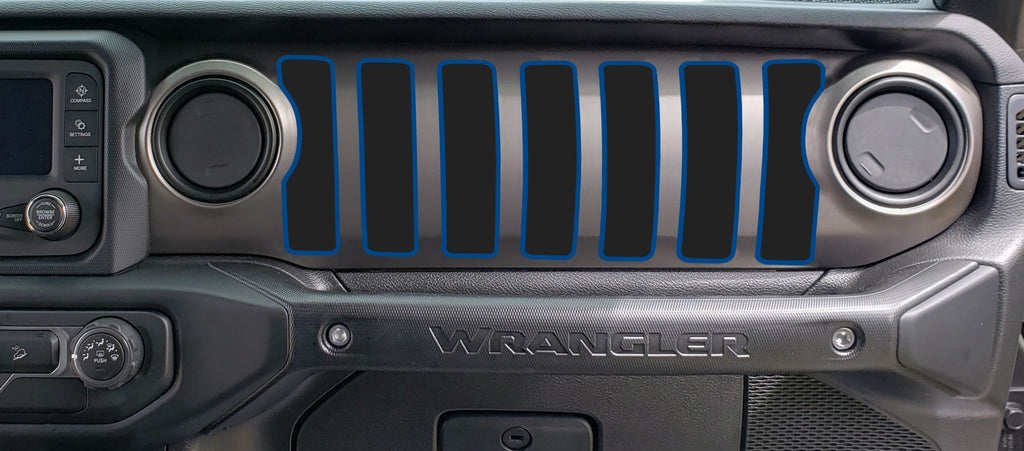 2 Color Dash grill decal Fits: 2018 & up Jeep Wrangler JL JT Sport MOAB Sahara Altitude