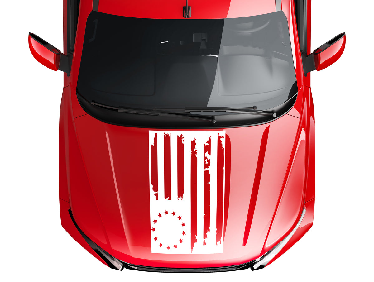 (1) US Flag Distressed 13 Stars Inverted USA Vinyl Hood Decal fits Jeep Wrangler TJ JK LJ 0316