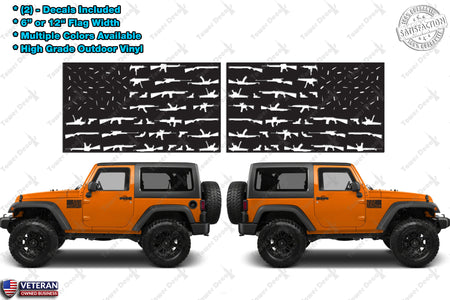 Two - 6" or 12" GunS American Flag Window Door Fender Vinyl Decals Old Glory USA Fits: Jeep