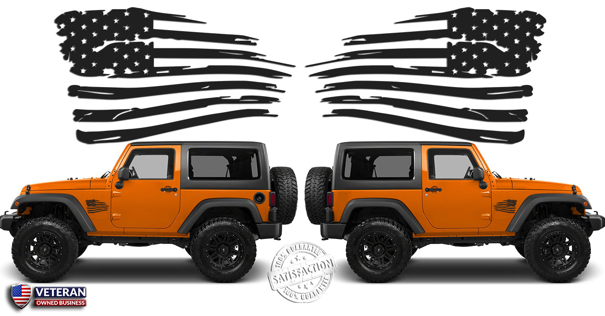 A pair of 6 or 12 inch American Distressed Wavy Flag Vinyl Decals fits: Jeep Trucks Universal