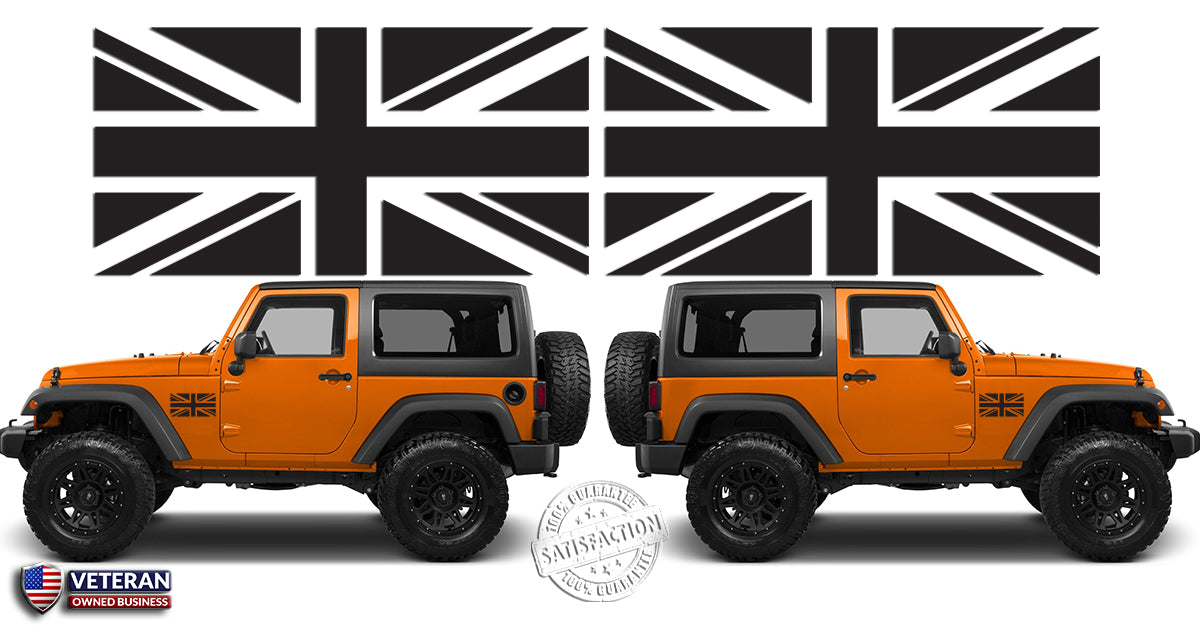(2) Union Jack Flags Great Britain Vinyl Decals Window Doors fits: Jeep Wrangler 0107