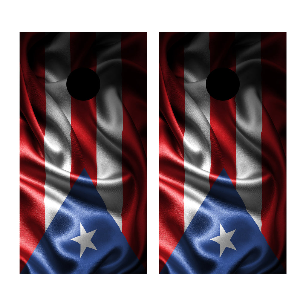 2 x Cornhole Board Bag Toss Vinyl Wrap Set-Puerto Rico Flag Waving Universal Fit Oracal 3M