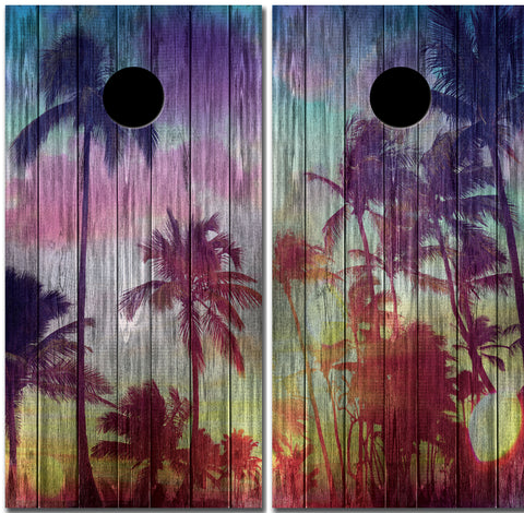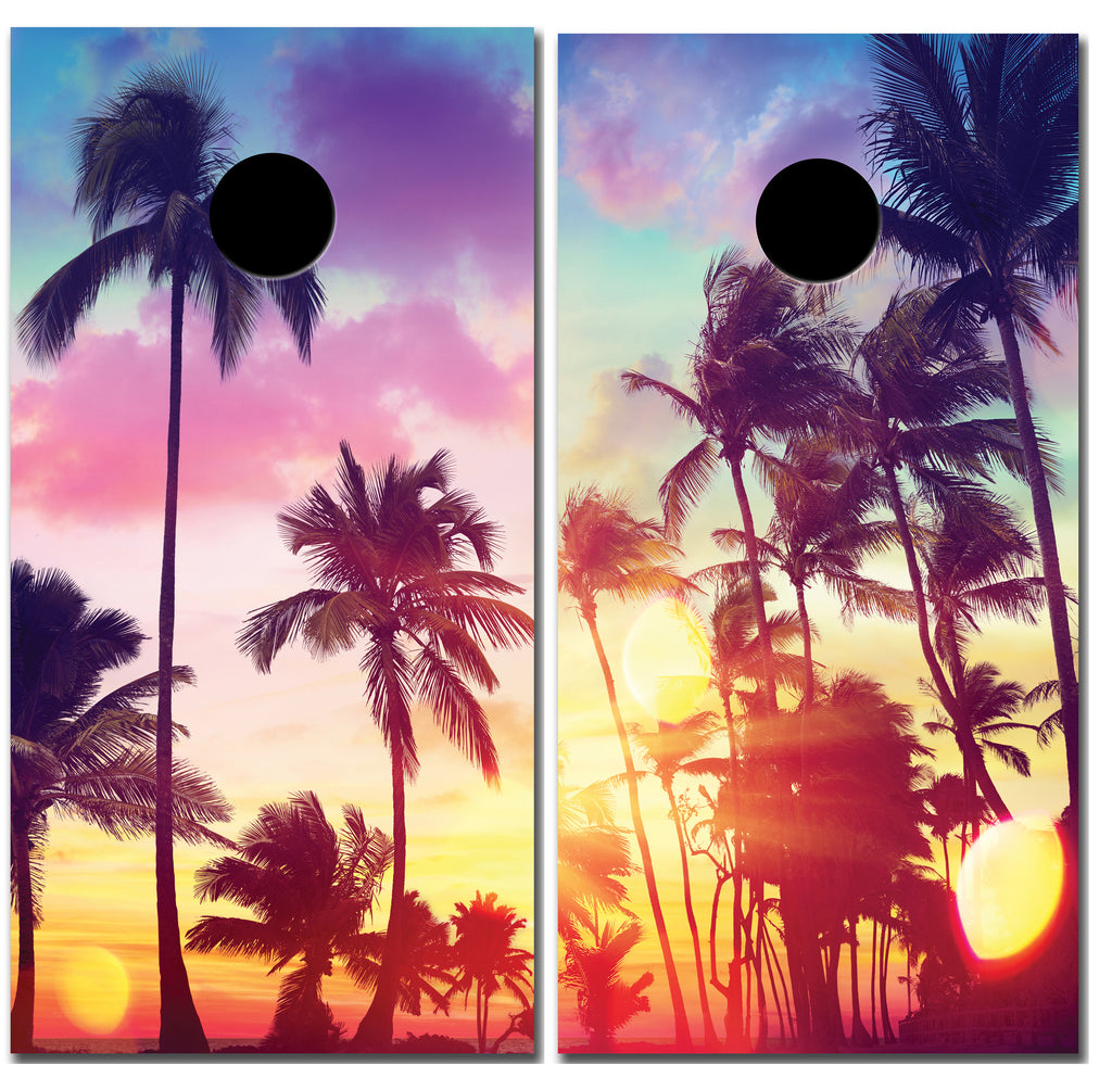 2x Palm Tree Sunset Cornhole Board Bag Toss Vinyl Wrap Set- Universal Fit Oracal 3M