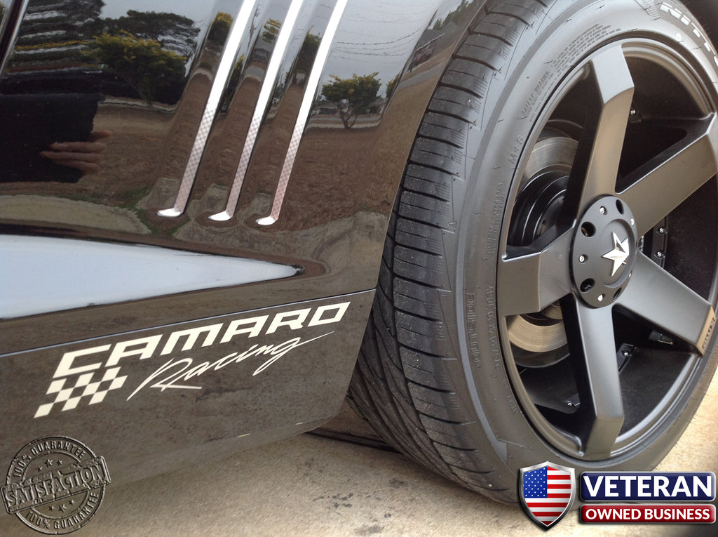 Chevy Camaro Racing Side Skirt Fender Vinyl LS LT RS SS ZL1 Z28 3 decals incl