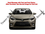 Custom Text Windshield Banner Vinyl Decal - Fits Toyota Corolla L LE LE Eco S