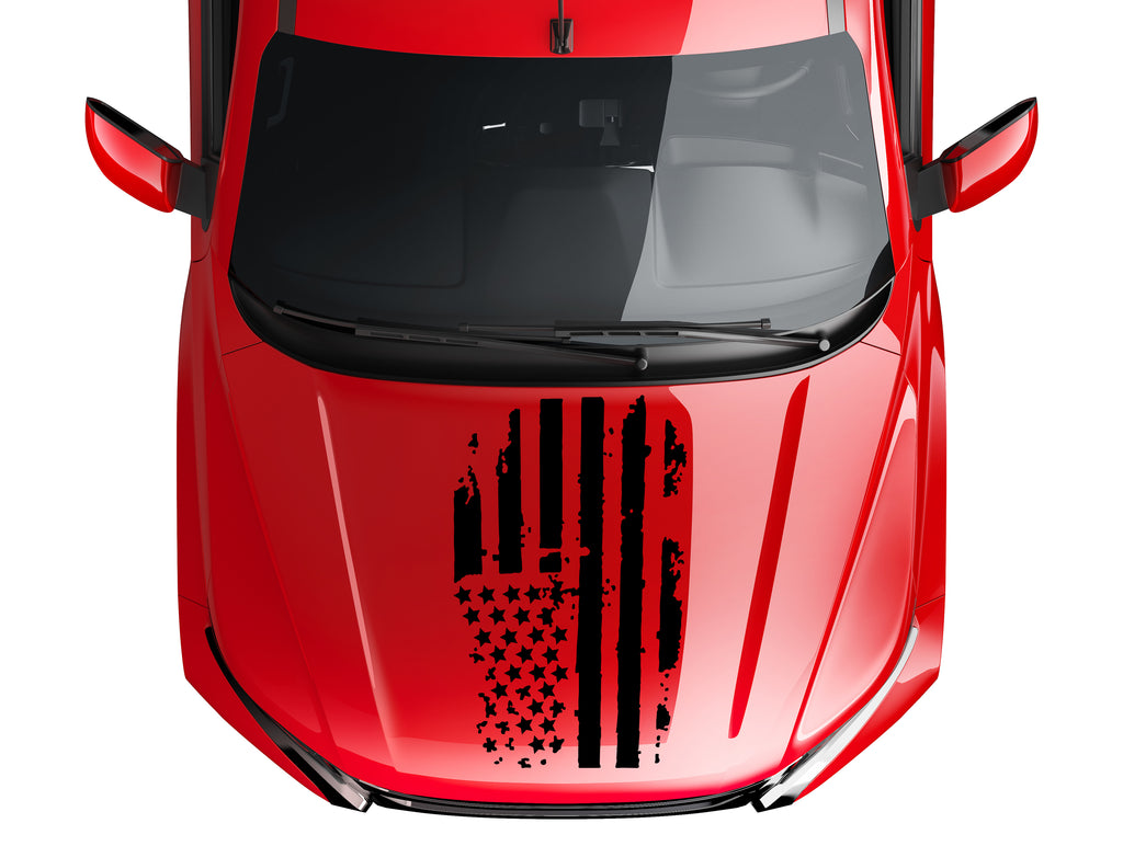 Distressed American Flag Hood Decal, Fits Jeep, Dodge, Ford, Chevy Trucks