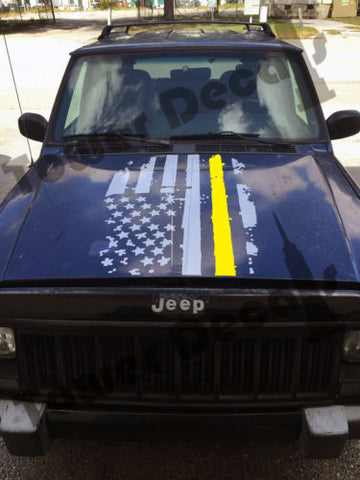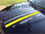 Distressed American Flag Thin Yellow Line Hood Decal Army, Fits Jeeps and Trucks