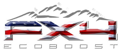FX4 Eco Boost MOUNTAIN Bedside Waving American Flag 3D Vinyl Decal Fits Ford 2008-2017 F150-250 SUPER DUTY