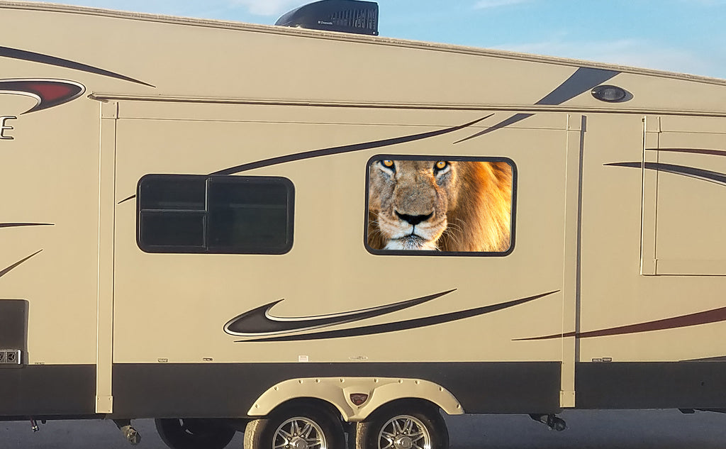 Lion Universal RV Camper or 5th Wheel Window 50/50 Perforated Vinyl Decal