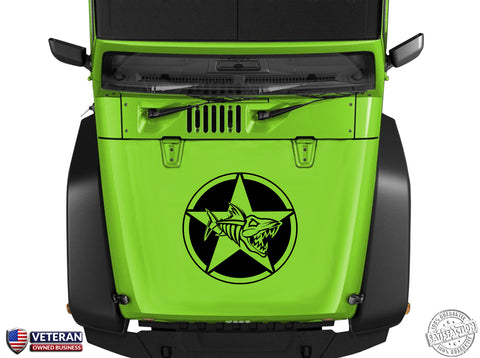 Oscar Mike Fish Skeleton Star Hood Vinyl Decal 23" Fits: Jeep Wrangler TJ JK LJ