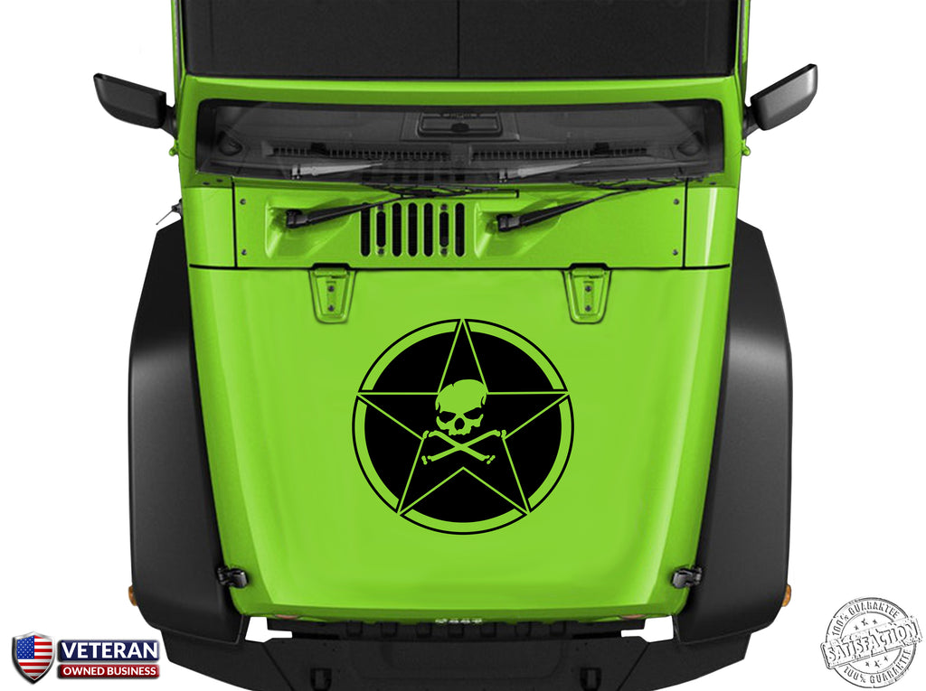 Oscar Mike Skull and Bones Star Hood Vinyl Decal 23" Fits: Jeep Wrangler TJ JK