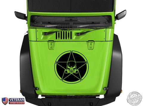 Oscar Mike Skull Gas Mask Star Hood Vinyl Decal 23" Fits Jeep Wrangler TJ JK LJ