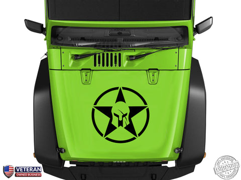 Oscar Mike Spartan Helmet Star Hood Vinyl Decal 23" Fits: Jeep Wrangler TJ JK LJ