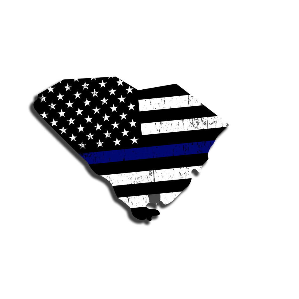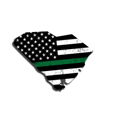 South Carolina Distressed Subdued US Flag Thin Blue Line/Thin Red Line/Thin Green Line Sticker. Support Police/Firefighters/Military
