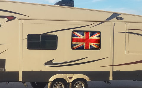 Union Jack Flag Universal RV Camper or 5th Wheel Window 50/50 Perforated Vinyl Decal