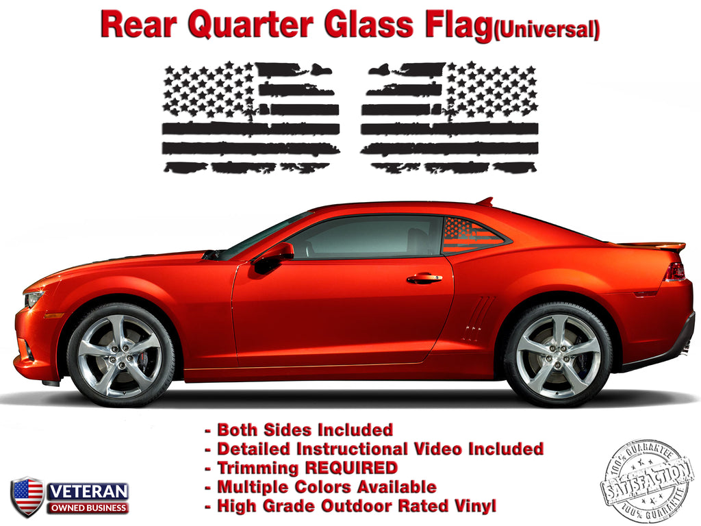 US Flag Vinyl Decal Universal fit Rear Quarter Window Distressed Grunge American